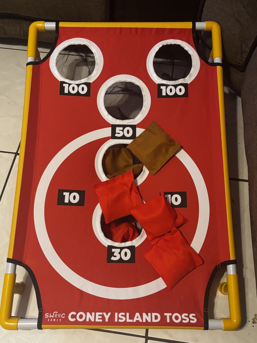 Bring classic carnival fun to your event with our Coney Island Cornhole Toss! This colorful, easy-to-play game lets guests toss bean bags toward the target for points, making it perfect for all ages. Great for parties, school events, and backyard fun, it adds a nostalgic carnival vibe everyone will enjoy.