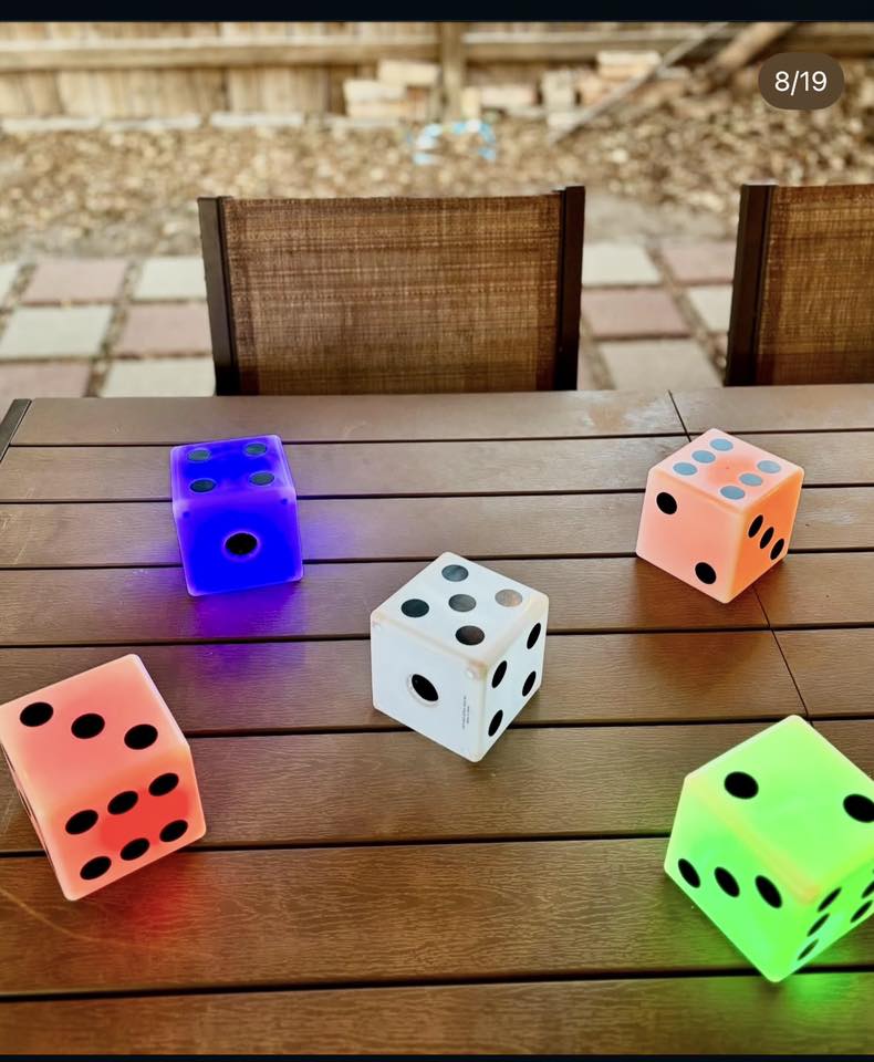 Add a playful twist to your event with our Jumbo LED Dice—available as an easy add-on at checkout! Perfect for all ages, they light up your games and bring extra excitement to every roll.